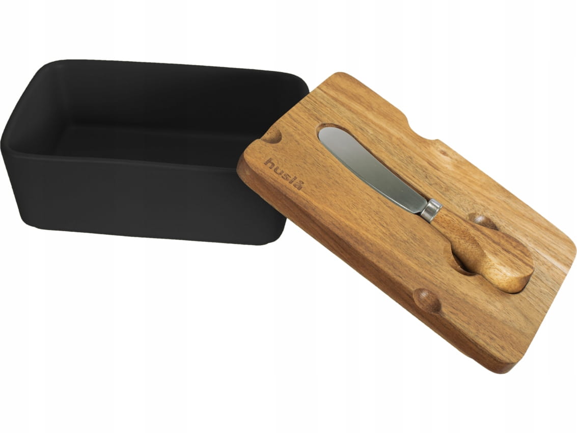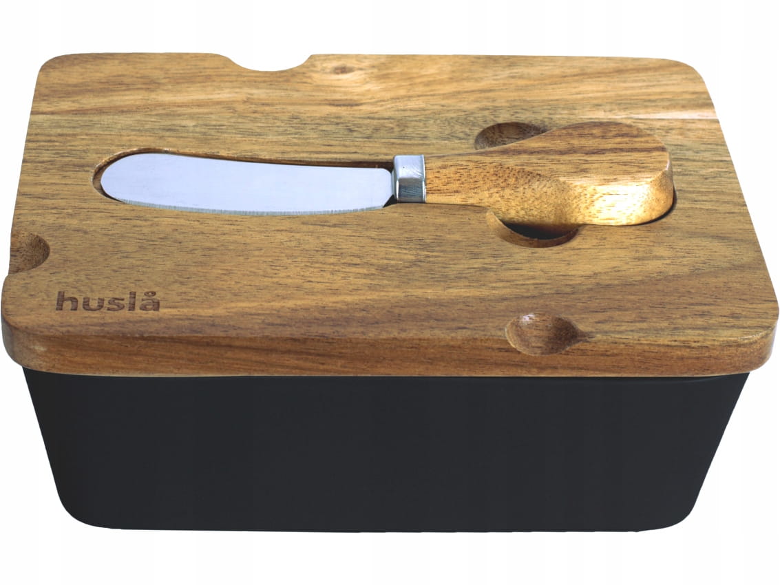 HUSLA Maselniczka Pojemnik na masło + Nożyk CZARNA