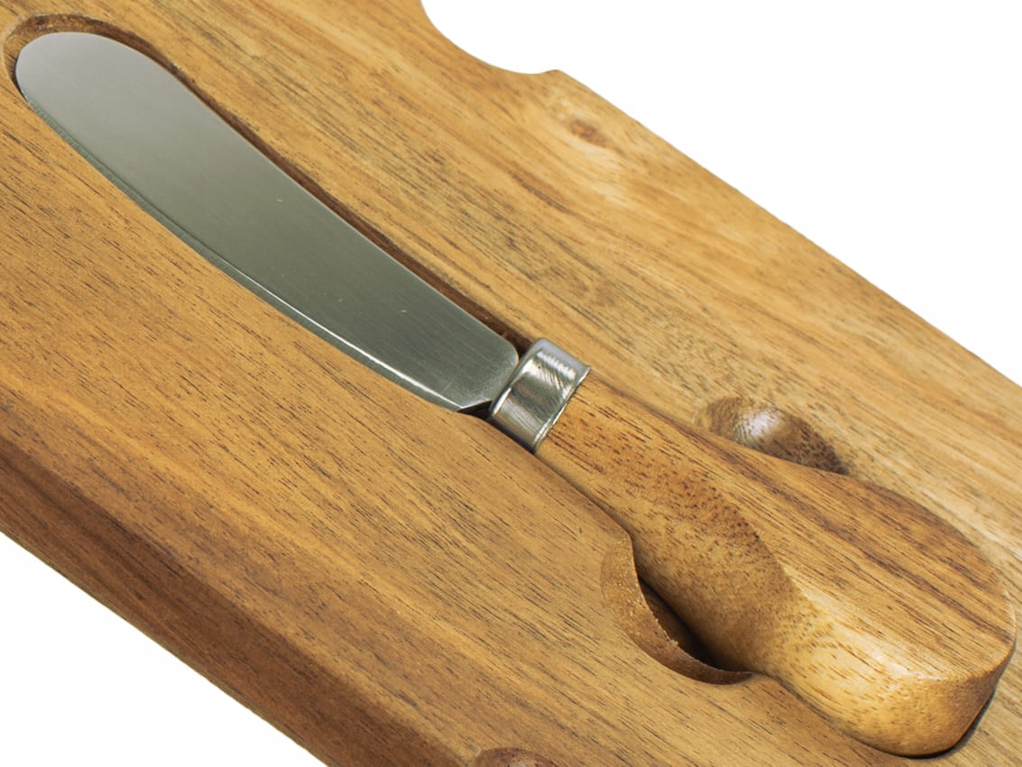 - Pokrywa wykonana z drewna akacjowego, w której umieszczony jest nóż do masła (w zestawie)