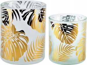 JUNGLE WHITE szklane Świeczniki Lampiony - 2 szt
