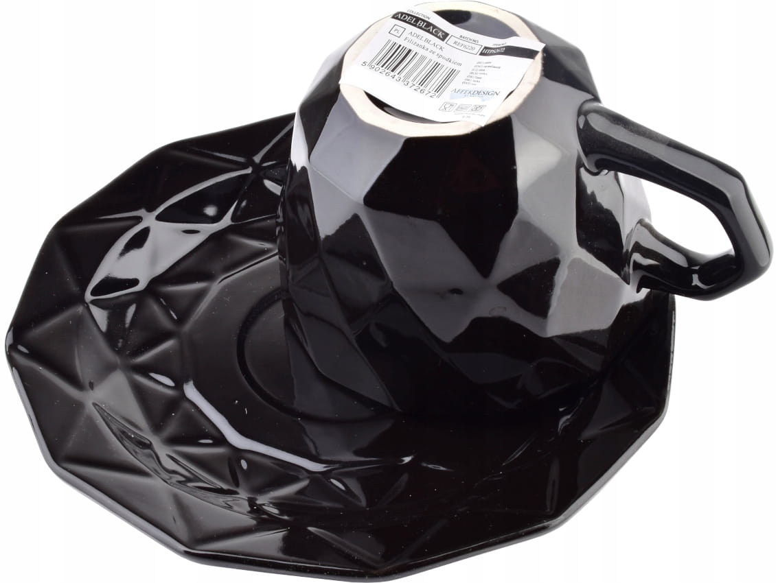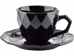 Przedmiotem aukcji jest zestaw, filiżanka ze spodkiem, w kolorze czarnym.