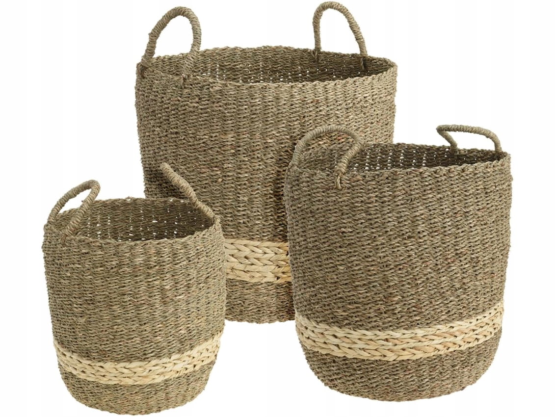 - Komplet 3 ekologicznych, plecionych koszy, wykonanych z trawy morskiej