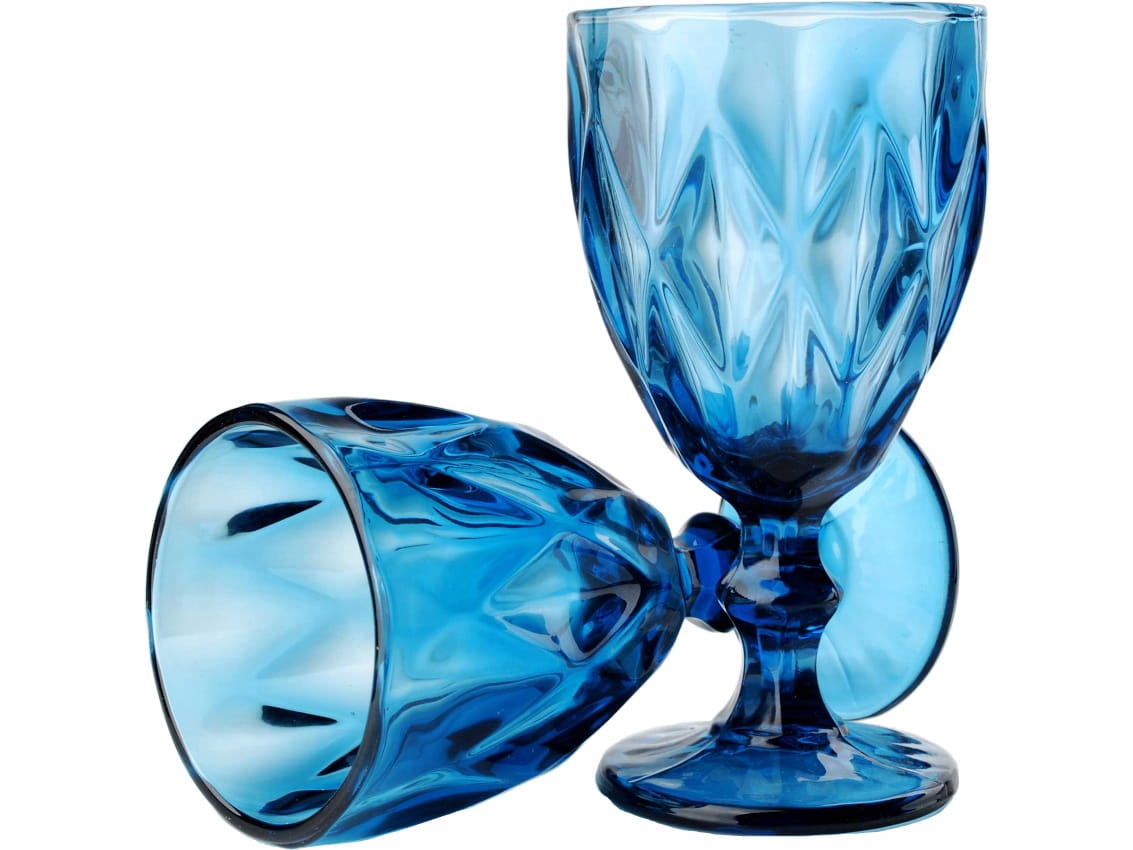 - Wykonane z grubego tłoczonego szkła, barwionego na niebiesko