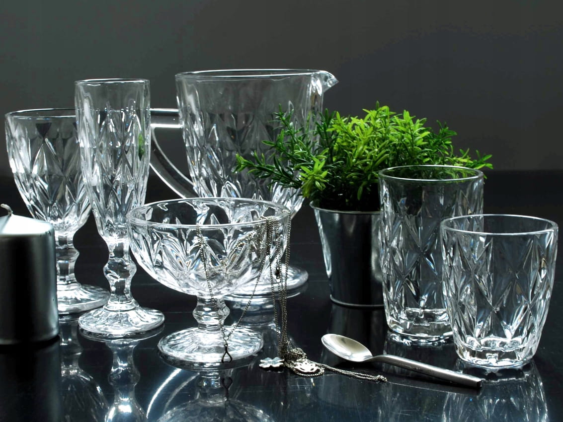 - Wykonane z grubego tłoczonego szkła