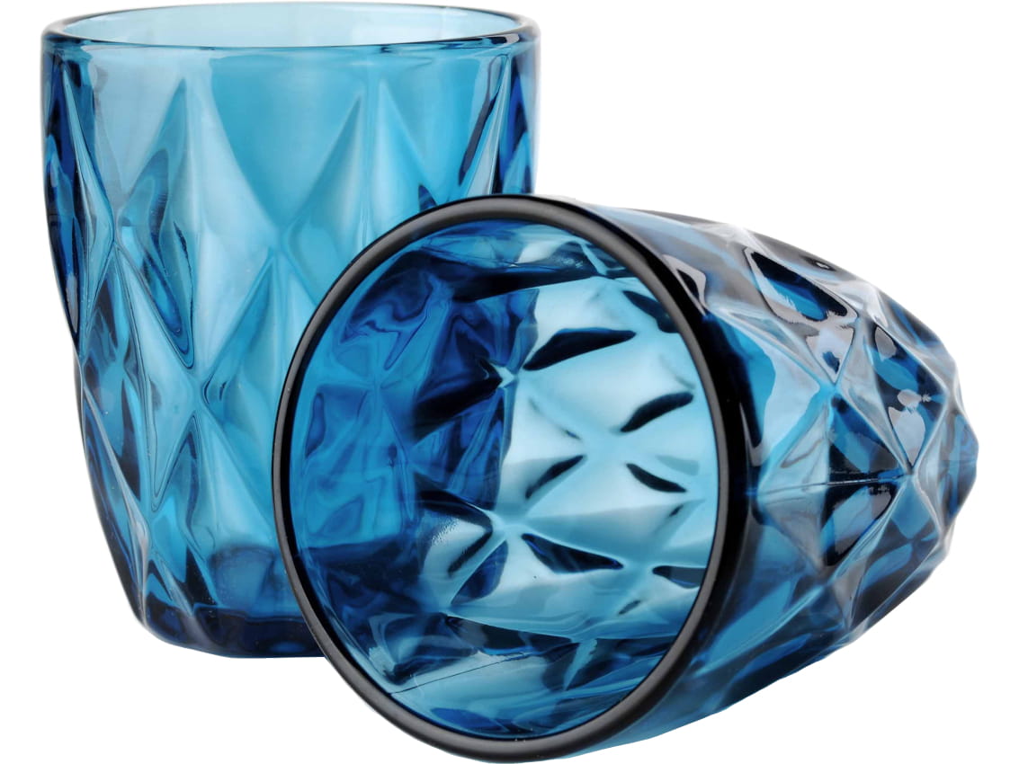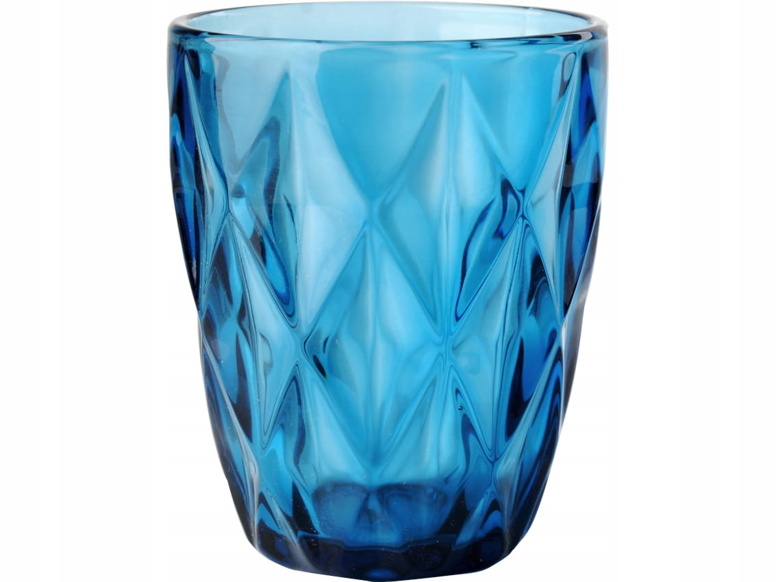 - Szklanki z grubego tłoczonego szkła, barwionego na niebiesko
