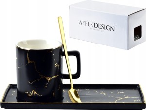 Piękny, nowoczesny zestaw - kubek ze spodkiem oraz łyżeczką, z kolekcji Odette marki Affek Design.