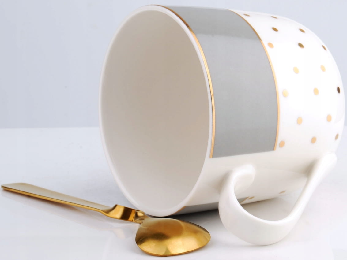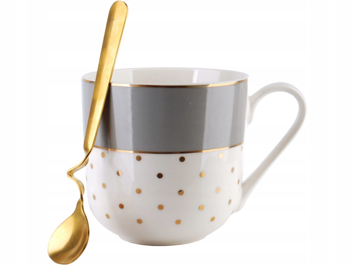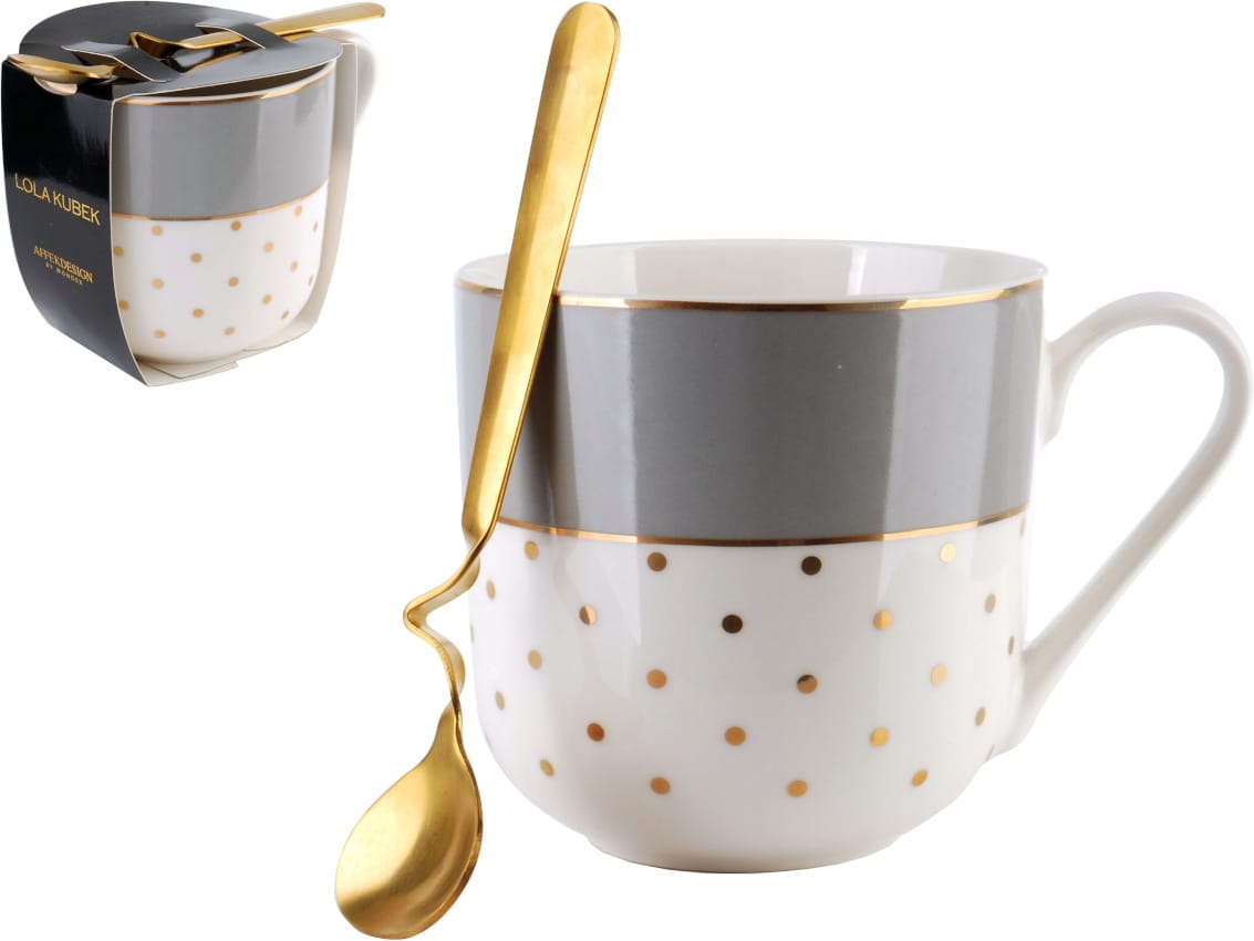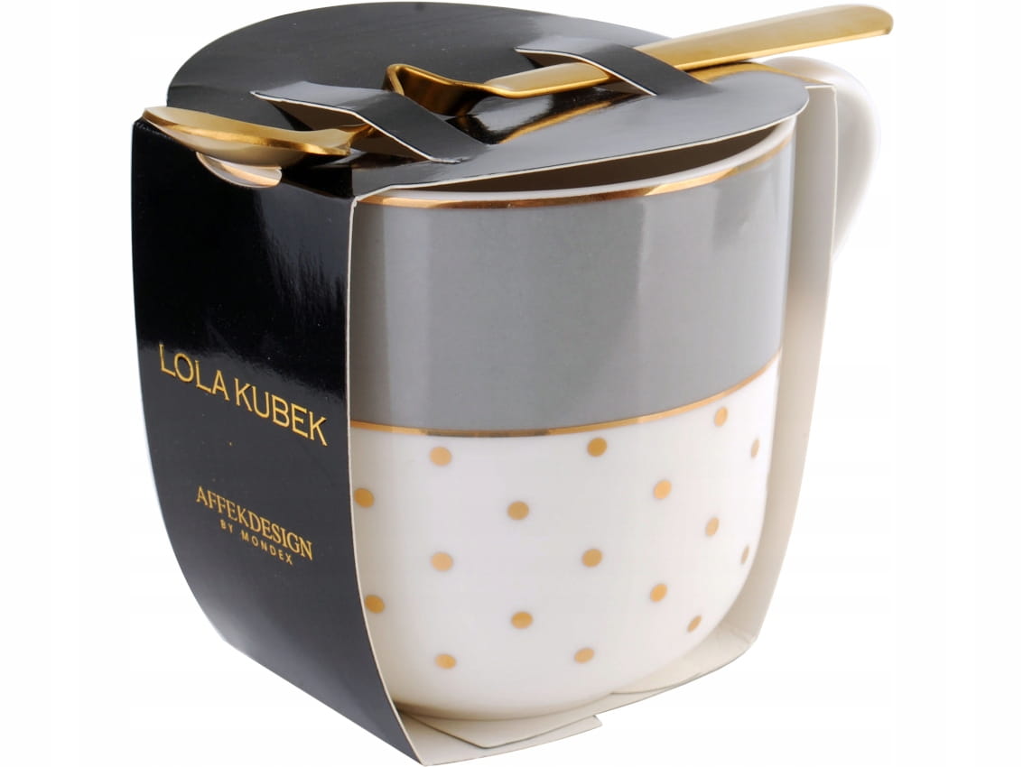 LOLA Porcelanowy kubek z łyżeczką - BIAŁY ZŁOTY