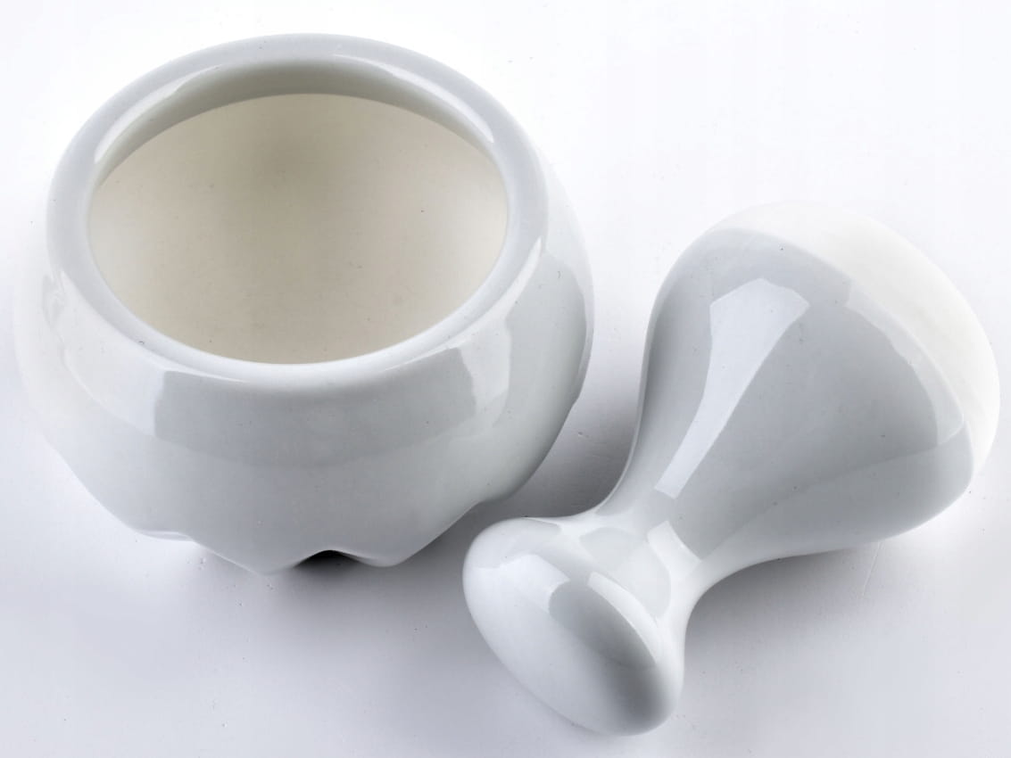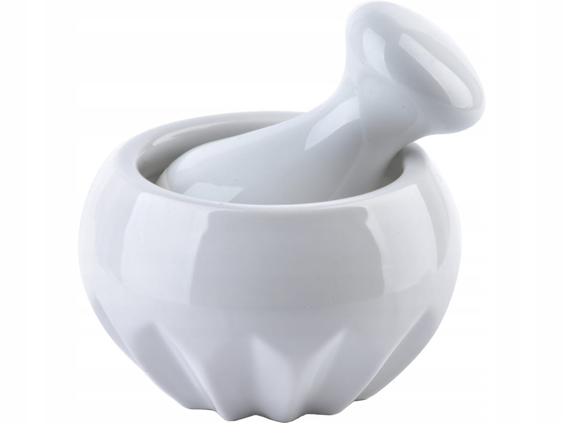 - Moździerz wykonany z wysokiej jakości, białej porcelany