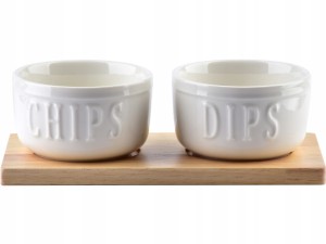 - Zestaw 2 miseczek, na podłużnej drewnianej podstawie, która ułatwi ich serwowanie