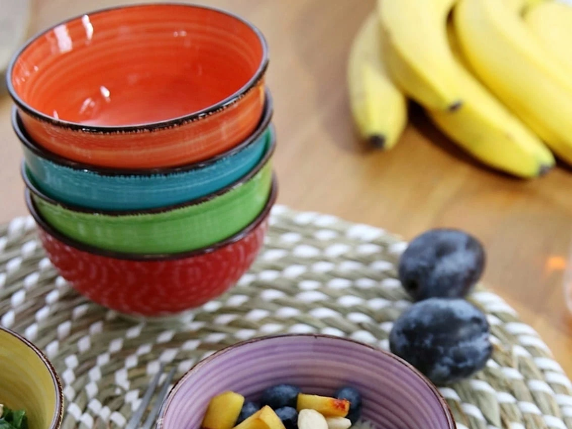 Przepiękne, kolorowe, ceramiczne miseczki w odcieniach kolorów tęczy.