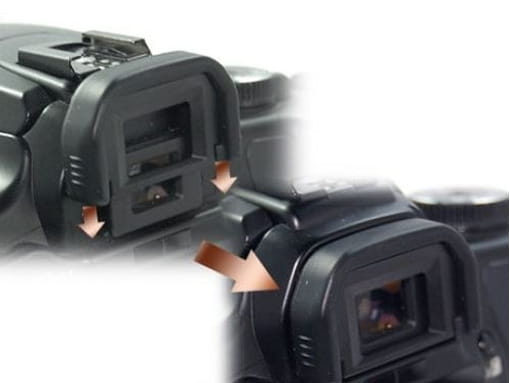 Muszla oczna zwiększa komfort pracy z aparatem, oraz poprawia widoczność w wizjerze - blokując światło dochodzące z zewnątrz. Jest szczególnie przydatna w słoneczne dni, jednak poprawę widoczności można zaobserwować w każdych warunkach.