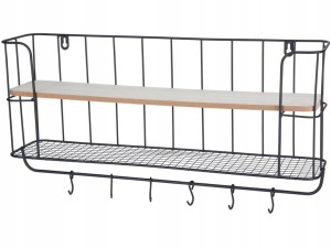 - Uniwersalna, dwupoziomowa półka z wieszakami - idealna do kuchni na przybory, akcesoria, przyprawy itp
