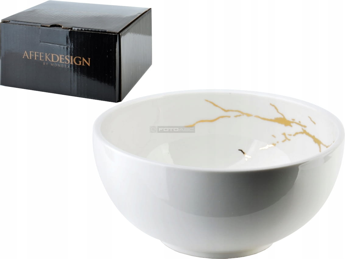 ODETTE GOLD Miska 600ml PORCELANA - Biało/Złota