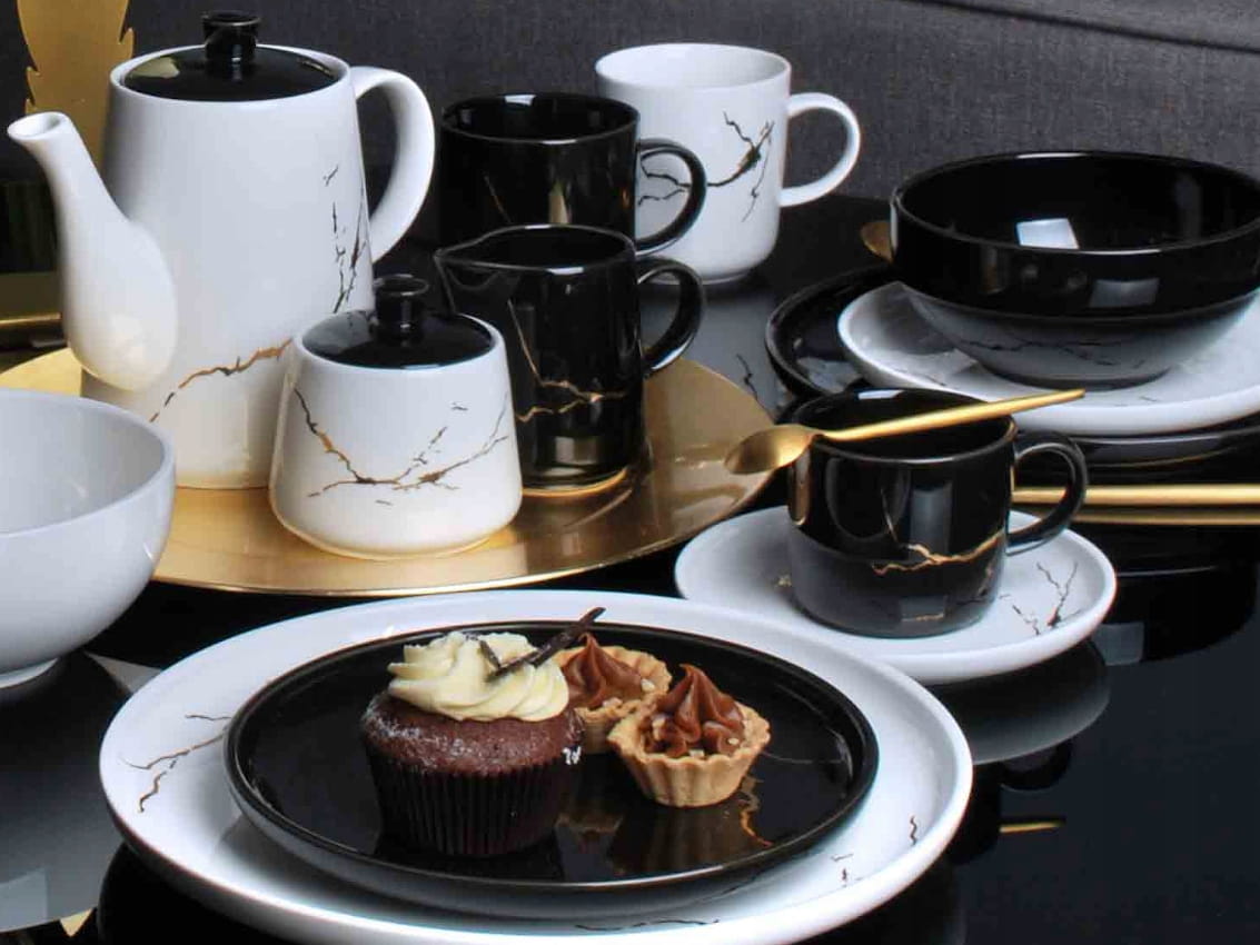 - Kolor: biały ze złotym zdobieniem