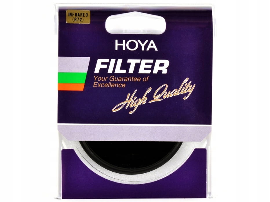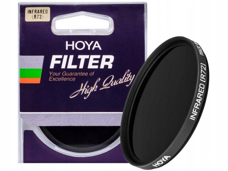 Filtr Hoya Infrared (R72) blokuje światło widzialne do długości fali 720nm, przepuszczając jedynie promieniowanie podczerwone.