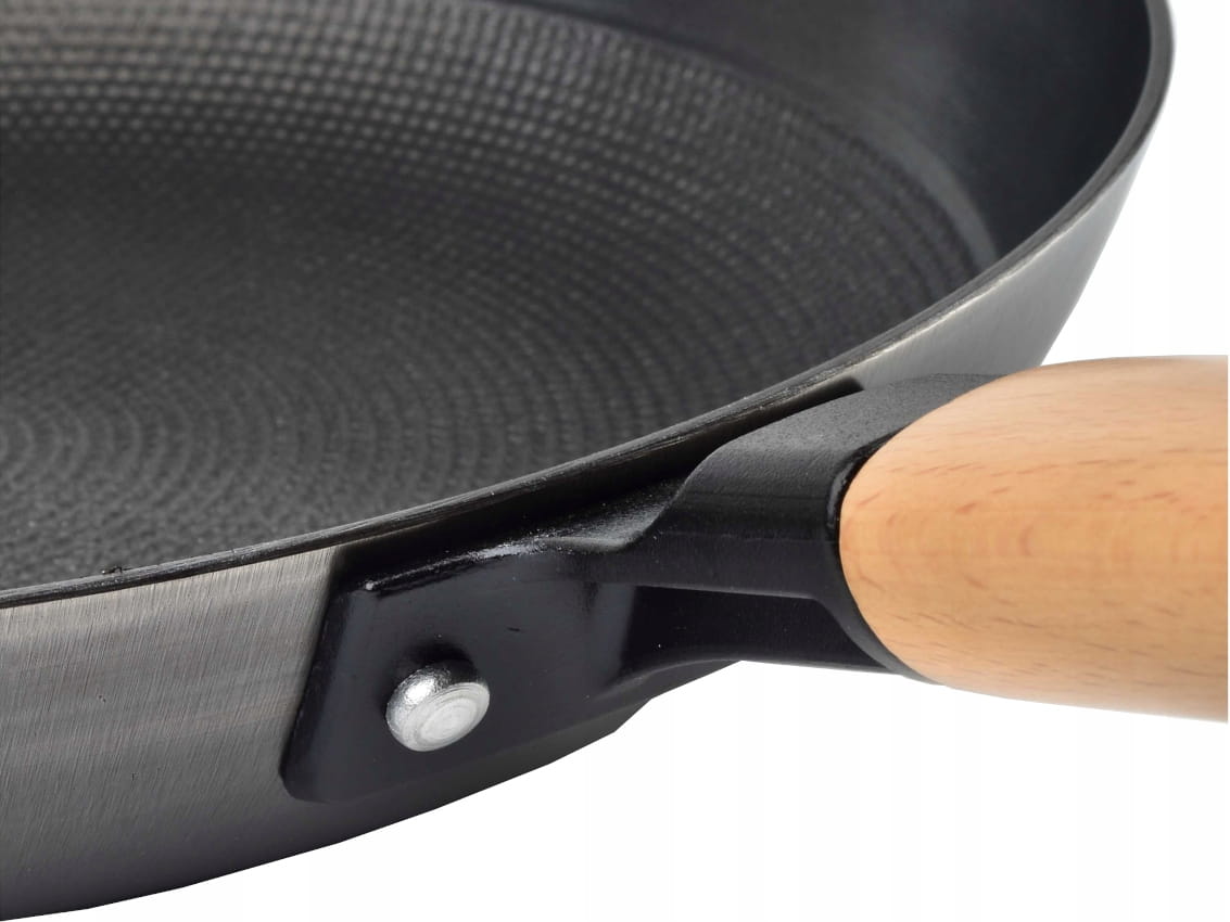 - Ze względu na drewnianą rączkę patelni nie należy myć w zmywarce