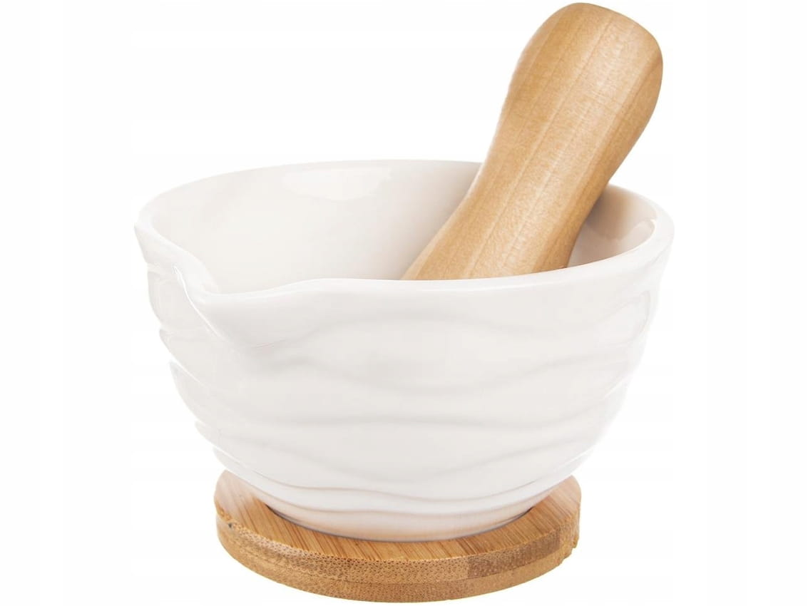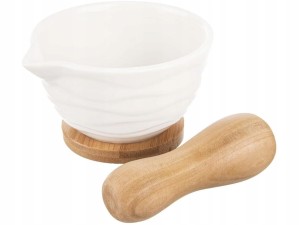 - W zestawie tłuczek oraz podstawka z drewna bambusowego
