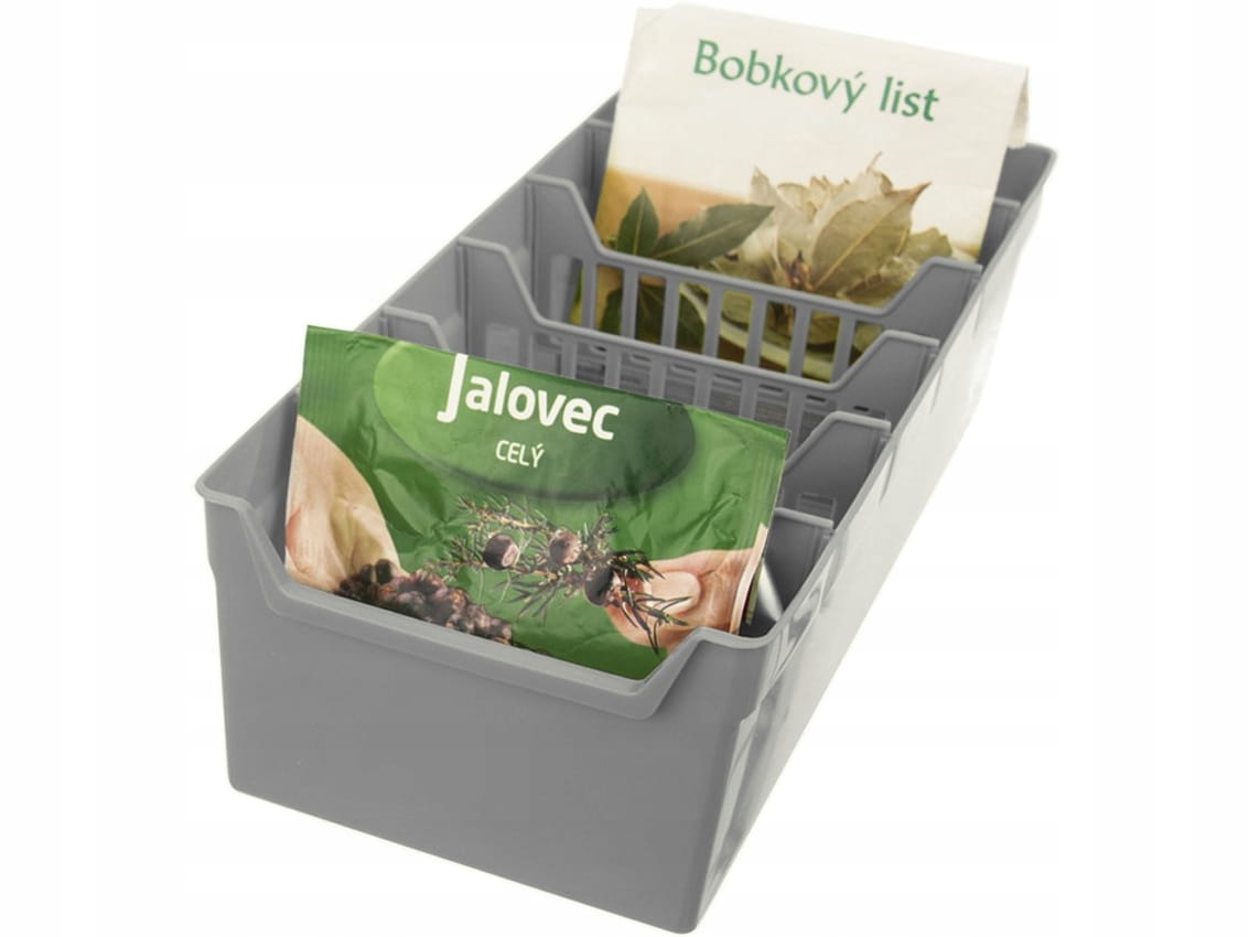 - Przegródki ułatwiają segregowanie, dzięki temu z łatwością znajdziemy produkt, który nas interesuje