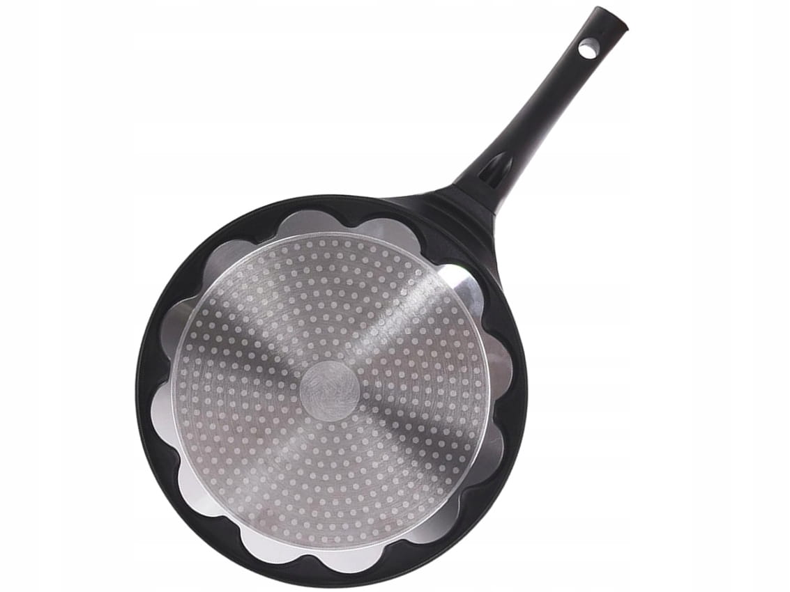 Patelnia do jajek i naleśników. Nadaje się na wszystkie rodzaje kuchni wraz z indukcyjną. Materiał: aluminium z doskonałą powłoką nieprzywierającą PFLUON GRANIT, uchwyt z tworzywa bakelitowego.