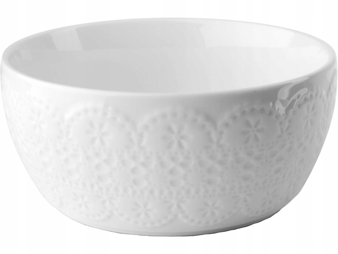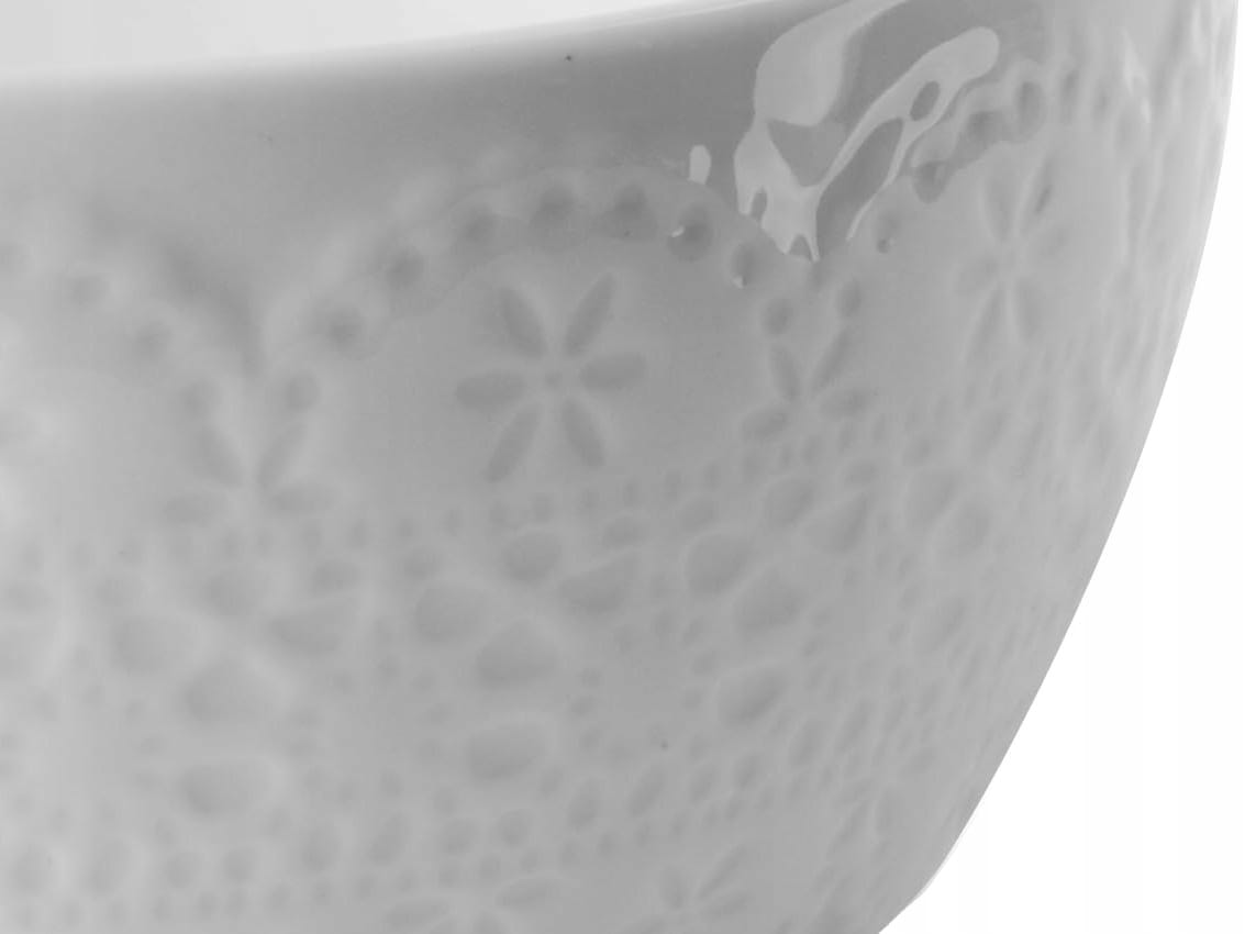 Wykonana jest z wysokiej jakości porcelany w kolorze białym, z delikatnym "koronkowym" ornamentem - będzie ozdobą każdej kuchni i uprzyjemni każdy posiłek.