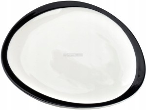 Wykonany jest z wysokiej jakości porcelany w kolorze białym, z czarnym zdobieniem.