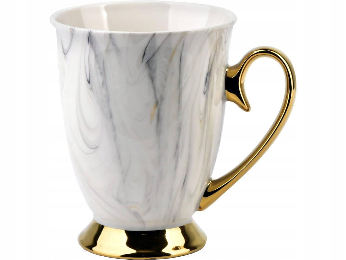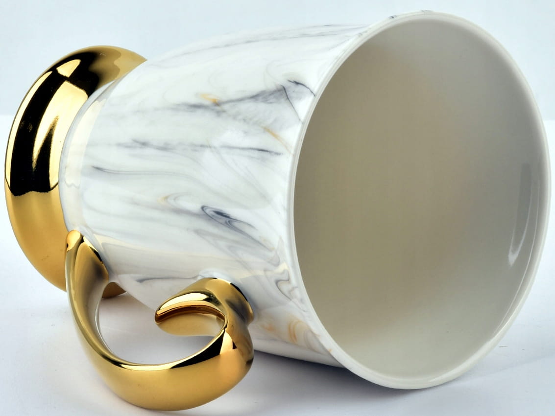 - Materiał: wysokiej jakości porcelana w białym kolorze, ze zdobieniami przypominającymi marmur