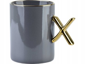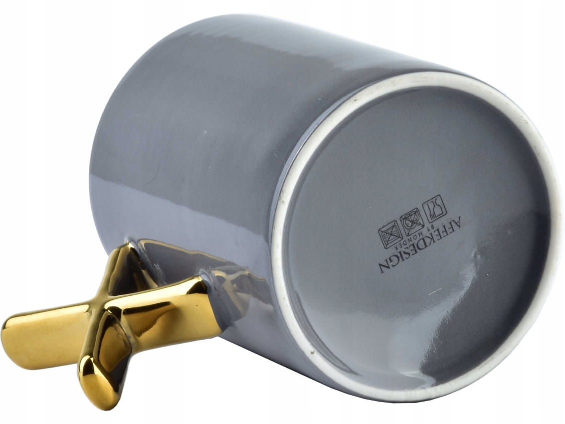 Kubek wykonany jest z wysokiej jakości porcelany w kolorze grafitowym, ze złotymi zdobieniami.