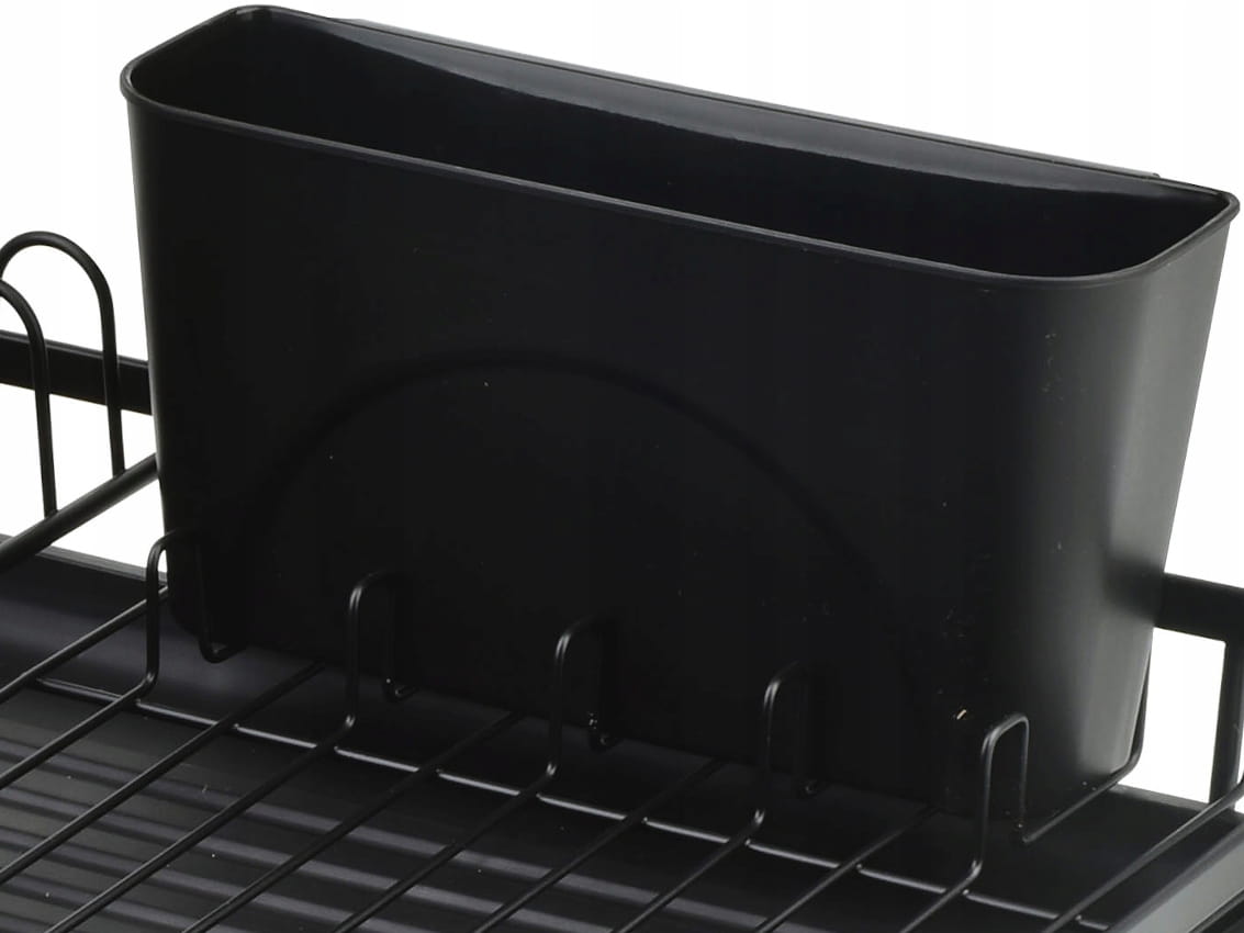 - Posiada podstawkę oraz ociekacz na sztućce