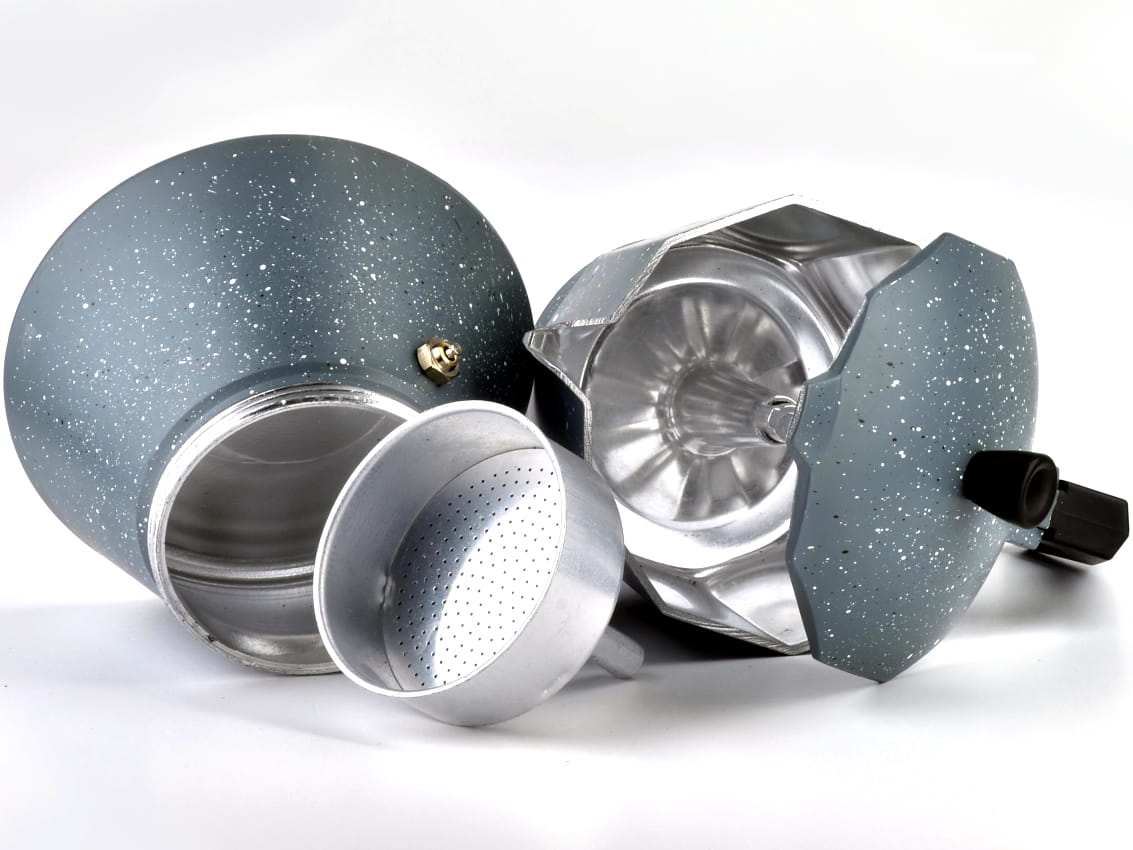- Gdy z otworu w dolnym zbiorniku zacznie wydobywać się para, kawiarkę zdejmujemy z kuchenki.