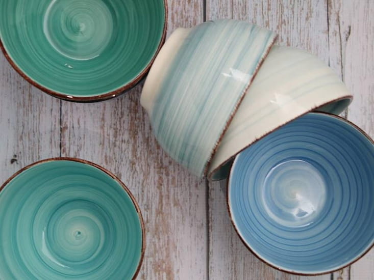 Przepiękne, kolorowe, ceramiczne miseczki w różnych odcieniach niebieskiego.