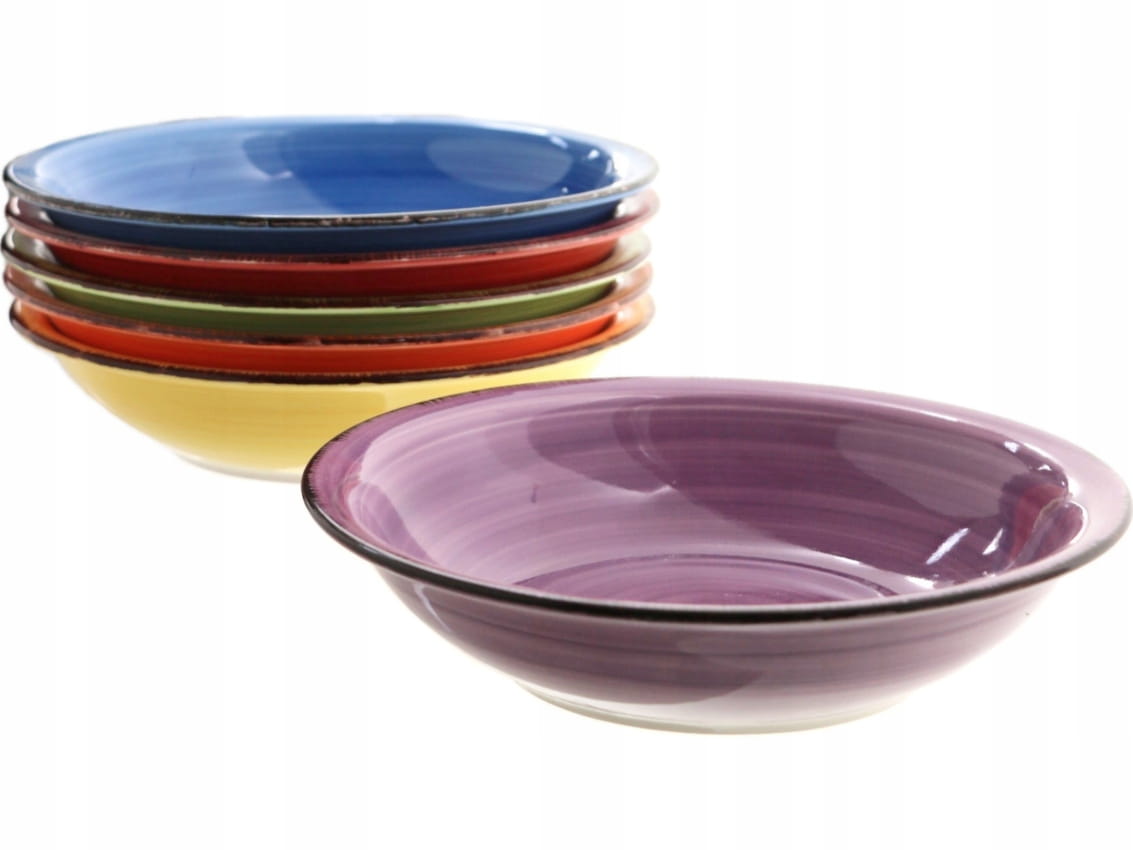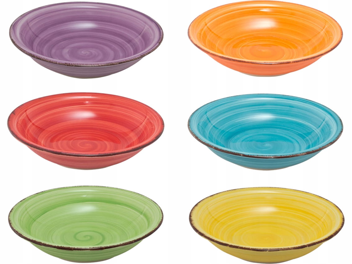 Talerze stanowią oryginalnie zapakowany komplet. W każdym komplecie znajduje się sześć talerzy o różnych kolorach (takie jak na zdjęciach).