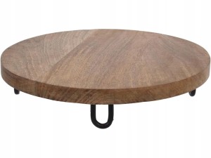 Drewniany talerz na trzech metalowych nóżkach - do serwowania dań, przekąsek, przystawek itp.