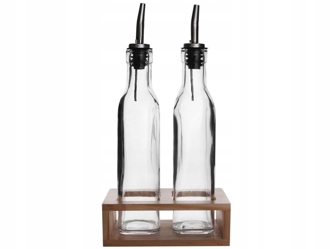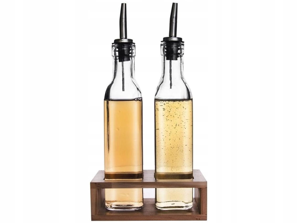 - Drewniany stojak z dwoma pojemnikami - do oliwy i octu