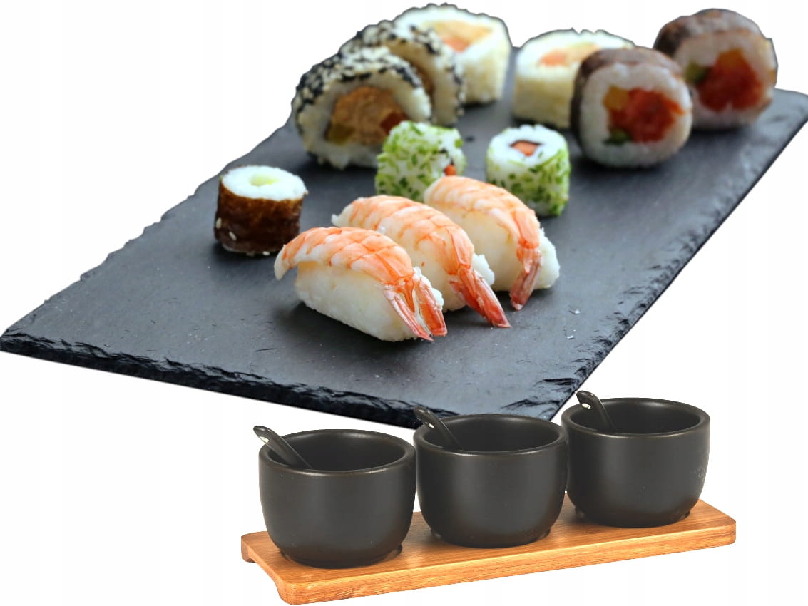 ZESTAW DO SUSHI Kamienna Deska ŁUPEK + 3 Miseczki