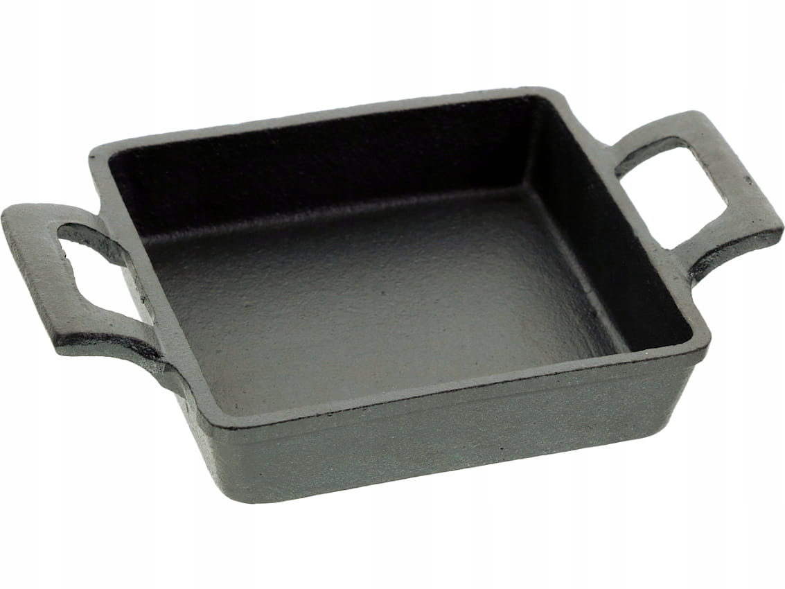 Żeliwna kwadratowa patelnia z rączką CZARNA - 13cm