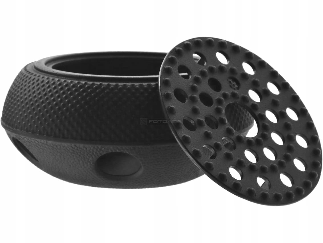 W dolnej części korpus posiada 6 otworów zapewniających cyrkulację powietrza, natomiast pokrywka - aby lepiej oddawać ciepło - wygląda jak sito z 25 dziurkami, oraz umiejscowionymi między nimi wypukłościami, które delikatnie unoszą postawiony na podgrzewaczu czajnik.